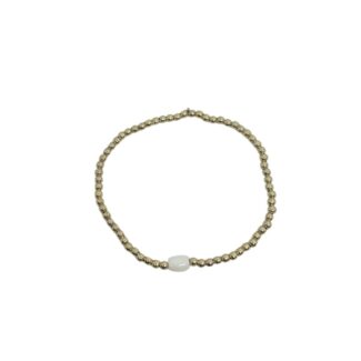 Een mooie gouden armband van stainless steel. Dit een goede basis armband om te combineren met meer kleur of lekker veel goud. In het midden een leuke schelp om het net iets minder basis te maken! Ook hebben we deze armband met zilveren stainless steel kralen.
