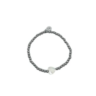 Een mooie zilvere armband van stainless steel. Dit een goede basis armband om te combineren met meer kleur. In het midden een leuke schelp om het net iets minder basis te maken!