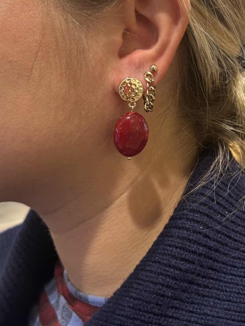 De Amadeo oorbellen zijn een mooie toevoeging aan je oorbellen collectie. De ronde steker en de ovalen resin kraal maken de oorbel een subtiele maar kleurrijke verschijning. De resin kraal is gegoten en heeft ook spikkels goud.