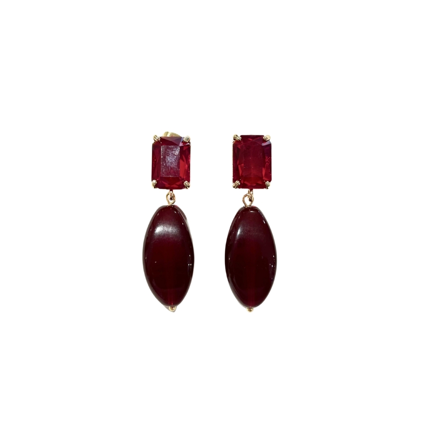 De Autunno collectie bestaat uit de kleuren van deze herfst en winter. De prachtige bordeaux rode Aria oorbellen zijn lekker licht in de oren en maken de outfit helemaal af. De ovalen vorm als hanger is van resin en weegt maar weinig. De mooie rode steker met een glazen geslepen steentje is een echte blikvanger.