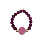 - Materiaal resin, stainless steel en pink dyed jade