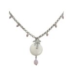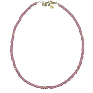 - Materiaal rozenkwarts, glaskralen en stainless steel