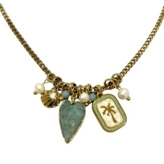 Deze ketting uit de Principessa collectie is een wat kortere ketting met mooie subtiele lichtroze accenten. De palmboom hanger brengt helemaal het zomer gevoel in ons naar boven! Super leuk om te dragen met andere kettingen uit deze collectie met bijvoorbeeld een leuke witte blouse!